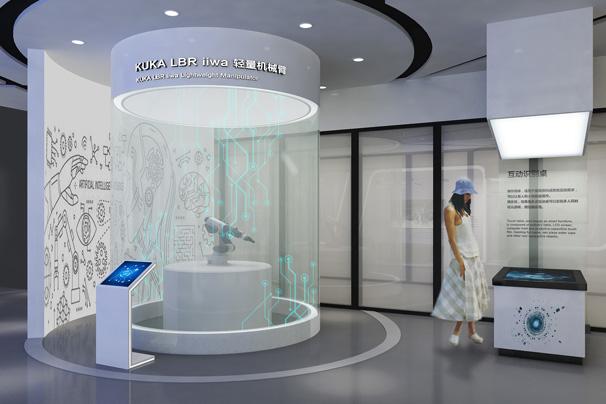 “企業(yè)數(shù)字化”、“騰飛未來”等板塊,展廳主要通過搭建多個(gè)場(chǎng)景還原訊飛產(chǎn)品在現(xiàn)代生產(chǎn)生活中的應(yīng)用,同時(shí)通過互動(dòng)觸摸屏、物體識(shí)別桌、機(jī)械臂、VR等創(chuàng)意性展項(xiàng),將訊飛企業(yè)理念、產(chǎn)品核心賣點(diǎn)與展項(xiàng)及場(chǎng)景相融合,智能化的展項(xiàng)與科技風(fēng)的空間風(fēng)格既凸顯了科大訊飛企業(yè)智能化的特點(diǎn),同時(shí)也助力展示企業(yè)的核心優(yōu)勢(shì)與價(jià)值理念。